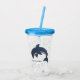 This acrylic drink tumbler with straw and lid has a sparkle dolphin who is dark blue with a white belly and is in a jumping position on the front and back. Customise your text with the template.