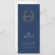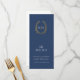 Dark navy blue, white and gold coloured wedding dinner menu. Edit this 4 course menu with your own meal option wording. Modern yet classical hand drawn oval leaves and monogram design. © Original oval hand drawing and design by Sarah Trett for www.mylittleedenweddings.com exclusively on zazzle.