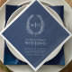Navy white oval leaves monogram wreath weddingDesigned by Sarah Trett