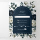 Dark Blue & White Modern Floral Greenery Wedding Tri-Fold Invitation