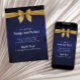 Stunning dark blue background tied with a gold bow image. Stationery is all printed, no actual ribbon. Personalise our gorgeous stationery with your event details easily and quickly, simply press the customise it button. Coordinating backside is included. Matching items to complete your event collection are available in our Zazzle store!
