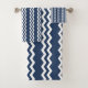 The towel set shows dark blue zig zag design. For customisation enquiries please contact bea@KBMD3signs.com