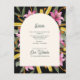 Share your important wedding information in refined botanical style with this dark blush pink lily arched wedding details card. Featuring vibrant watercolor lilies, golden yellow blooms, and lush greenery set against a dramatic black background, this design highlights a modern curved arch layout for a sophisticated and elevated presentation.