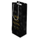 Elegant wine gift bag featuring the words "Pop Fizz Clink" in faux gold foil against a dark grey bokeh lights pattern background. Perfect for engagement parties, weddings, anniversaries, birthdays or various other events.