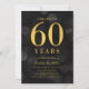 Classy 60th Birthday Party invitation featuring the words "Cheers to 60 Years" in faux gold foil against a dark grey bokeh pattern background. Invitation has a dark grey background back side.