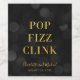Elegant label featuring the words "Pop Fizz Clink" in faux gold foil against a dark grey bokeh lights pattern background. Perfect for engagement parties, weddings, anniversaries, birthday or various other events.