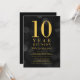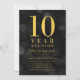 Classy class reunion invitation featuring the words "10 Year Reunion" in faux gold foil against a dark grey bokeh lights pattern background. Invitation has a dark grey background back side.