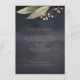 Rustic watercolor botanical greenery leaves on moody dark indigo grey background, elegant and romantic, great detail cards or direction cards for vintage rustic wedding, country wedding and garden wedding at night in fall and winter.