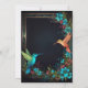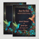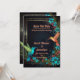 Celebrate your special day with this elegant wedding invitation featuring two vibrant hummingbirds in mid-flight, surrounded by lush tropical flowers and delicate foliage. The dark botanical background adds a touch of sophistication, while the intricate floral border with rich hues of blue, red, and orange creates a striking contrast. Accented with a subtle gold frame, this design exudes romance and timeless beauty, perfect for nature-inspired, garden, or tropical-themed weddings. Let this exquisite artwork set the tone for your unforgettable celebration.