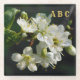 Dark Botanical White Plum Blossom Glass Coaster