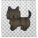Destei's original cartoon illustration of a cute dark brindle coat colour Cairn Terrier breed dog. The background has a pattern of grey dog paw prints.