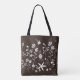 A go-everywhere tote is a must. This durable tote features a dark brown background with a fun, fresh design of white flowers. For those who love earthy colors and roses, daisies and chrysanthemums!