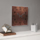 An acrylic clock with a photograph of dark brown old wooden paneling. Click on "Customize” to remove clock face; if desired.