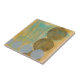 Dark brown and grey circles populate this work by Jennifer Goldberger, set over an orange and blue background. Grey Numbers are also printed on the background. An enjoyably abstract work, order your copy today!