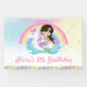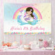 Cute Mermaid and Rainbow Unicorn Pool Party Welcome Backdrop Sign, featuring a pretty mermaid, cute unicorn floatie and a whimsical rainbow sky. Personalise this whimsical backdrop with your own wording easily and quickly, simply press the customise it button to further re-arrange and format the style and placement of the text. Exclusive design (c) The Happy Cat Studio.