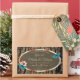Make a lasting impression with this elegant and modern product label design featuring a dark brown wood grain and natural tree bark with a pretty rose golden frame and cute teal butterflies.