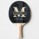Dark Burnt Wood Monogram & Name Overlay Ping Pong Paddle