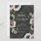 This bridal shower luncheon design features a dark charcoal black and silver marbleised background with a beautiful floral side spray of anemones, roses, and other flowers in the palest lavender, white, green, and pale pink. Created by Simply Farmhouse Press.