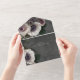 AVAILABLE WITH OR WITHOUT A QR CODE OR WITH OR WITHOUT DINNER SELECTION OPTIONS. This design features a dark charcoal black and silver marbleised background with a beautiful floral side spray of palest lavender, white, green, and pale pink. Created by Simply Farmhouse Press.
