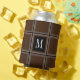 Dark Chocolate Brown Custom Single Initial Striped Can Cooler