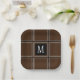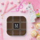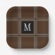 Dark Chocolate Brown Custom Single Initial Striped Paper Plate