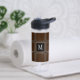 Dark Chocolate Brown Custom Single Initial Striped Water Bottle