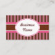 Dark chocolate and raspberry stripes decorate this professional business card. Customise this business card to suit your needs. The design is from original art. Use this stylish business card for a daycare, salon, hair salon, gourmet chocolate, candy shop, catering, cosmetologist, bed and breakfast, boutique, bakery, coffee shop, childcare, etc...