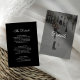 These sophisticated and modern wedding detail cards feature your own personal photo covering the back of the card completely. A sheer, dark overlay contains white, formal script calligraphy. The front of the card has a traditional, elegant layout on a black background with the same classic calligraphy and simple text. You can use these cards for driving directions, reception or transportation information, hotel or accommodations information, and any other wedding details you need your guests to know.