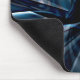 Sunken curves in burgundy covered by other twisted curves in a gaudy dark blue chrome with a gradient that resembles something metallic or similar to a twisted thick glass or semi-transparent plastic in dark blue with a shade of soft reflected light.