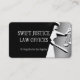 This business card features a black and white Dark Deco style Lady of Justice making a judgement. In stark contrast the other side keeps it simple with text on a white background. Make sure your business name and brand stands out with a business card that uses bold design and quality materials. Perfect for lawyers and legal personnel.