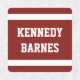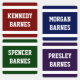 Sporty back to school iron on name labels in navy blue, maroon, dark forest green and dark purple with your children's names in an athletic font. Make sure your child's belongings make it back home with these personalised name labels! This set name labels in four colours features your child's or children's name in a bold varsity font and a variety of dark colours. They're a great way to help label your kids' clothes in a sporty style. Order your personalised back-to-school name labels today and make sure your child's belongings stay organised!
