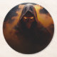 Dark demon with orange smoke halloween round paper coaster