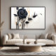 A majestic black rose with metallic sheen and golden outlines emerges from a fluid, geometric backdrop. Art merging delicacy and power—blending classic symbolism with futuristic aesthetics. Ideal for those who value contrast, sophistication, and profound visual storytelling.