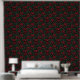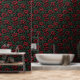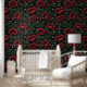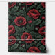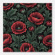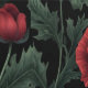 "A striking floral pattern featuring deep crimson poppies with delicate, ruffled petals set against lush green foliage. The rich, dark background enhances the vivid colours of the flowers and leaves, creating a dramatic and elegant botanical aesthetic. Perfect for textiles, wallpapers, or artistic prints that seek a bold and timeless natural beauty."