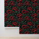 Dark Elegance: Crimson Poppies and Verdant Leaves Wallpaper