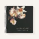 Stunning custom printed elegant designer spiral bound hardcover notebooks for you to personalise with your own business details and then have professionally printed and delivered to your door! (allow for current setbacks)  This template is set up and ready for you to overwrite with all your own details. You can simply do it by typing over the example text in the boxes under the personalise heading or you can press the customise button to go to the more detailed editing area where you can move and change things if needed. (make sure to double and triple check all your spelling though before printing because what you type will be what's printed). Featuring art deco, dark background with striking floral graphics.  dark green background with beautiful realistic digital photography of floral bouquet.
