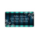 a elegant teal turquoise aquamarine design, using a pretty script font, a swirl around the corners all on a striped dark blue and light blue with the ability to change the name and adress to your own of course