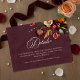Step into a realm of exquisite elegance with our floral dark and moody small wedding details enclosure card. Designed to captivate the senses, this design boasts a striking burgundy wine background adorned with a breathtaking burst of autumnal florals in deep burgundy, burnt orange, creamy hues, and touches of luxurious gold, complemented by lush olive green foliage. The creamy text adds a touch of romance to the overall allure. Embrace the opulence of the season and set the tone for your special day with this stunning design, sure to leave a lasting impression on your guests. Created by Simply Farmhouse Press.