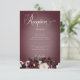 Step into a realm of exquisite elegance with our floral dark and moody wedding reception card. Designed to captivate the senses, this invitation boasts a striking burgundy background adorned with a breathtaking burst of rich burgundy and cream roses, pale lavender grey hydrangeas, and other mixed florals in soft white and palest pink, complemented by lush olive green foliage. The creamy text delicately floats upon a soft blur of light, adding a touch of romance to the overall allure. Embrace the opulence of the season and set the tone for your special day with this stunning design, sure to leave a lasting impression on your guests. Created by Simply Farmhouse Press.