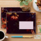 Romantic floral inspired by Dutch masters of the 17th century on dark burgundy red background with editable names and address on the back