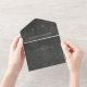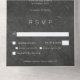 AVAILABLE WITH OR WITHOUT A QR CODE OR WITH OR WITHOUT DINNER SELECTION OPTIONS. This design features a dark charcoal black and silver marbleized background with the bride and groom's monogram. Created by Simply Farmhouse Press.