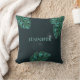 A dark emerald green background with large monstera leaves is the canvas of this elegant, modern, and tropical throw pillow. Add a little tropical feeling to your living spaces with this design. You can personalise the pillow with your name to make it uniquely yours. We added a different background colour to the back of the pillow but you can change it to your liking.