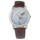 The watch looks really great! Very sharp and well done. The leather band is really nice, though for a man's watch I think it should be longer. Unfortunately, it isn't big enough for my husband's wrist but I will get a replacement because he is very excited to wear it!