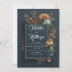 Set a dramatic and romantic tone with this Dark Floral Frame Wedding Invitation, featuring a moody deep green background with an elegant gold border and a lush arrangement of fall-inspired florals. The bouquet of golden yellow, rust orange, blush, and dusty blue flowers brings a seasonal richness and natural elegance that makes this design perfect for autumn weddings or sophisticated events year-round.