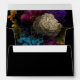 Dark Floral Moody Wedding Invitation Envelope with Photo Liner. Part of The Amber Wedding Invitation Suite Collection. Dark Moody Florals and Monograms. Gold coloured Text is fully customisable. Illuminated Flowers. Dark black background with faded flowers. This envelope has a return address on the back top flap. Delete text if not needed.