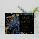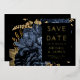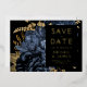 Dark Floral Navy Blue Gold Wedding Save the Date