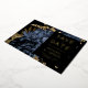 This elegant, moody wedding Save the Date card features a lush, romantic floral bouquet in navy blue with gold faux foil and glitter foliage on a black background. Customise the real gold foil text in stylish fonts on a black rectangle, and add your wedding website URL to the solid black back.