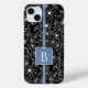 Dark Floral Pattern Black Blue Sketch Monogram Case-Mate iPhone Case