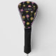Personalised floral golf head cover with a girly dark floral design created from digitally drawn abstract flowers with round shapes in yellow and pink. This decorative floral design will just get you in the mood for spring season.