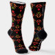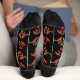 Dark Folk Art Floral Print Cosy Rustic Black Fall Socks